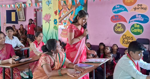 Fully fenced secure grounds * Laboratories for Physics, Chemistry, Biology, Computers and separate rooms for Activity, Art, Craft, Music, Dance, Debates and Cooker LKG to Class 3 class individual student tables are fitted with slates to practice writing and scribbling with chalk piece for better writing